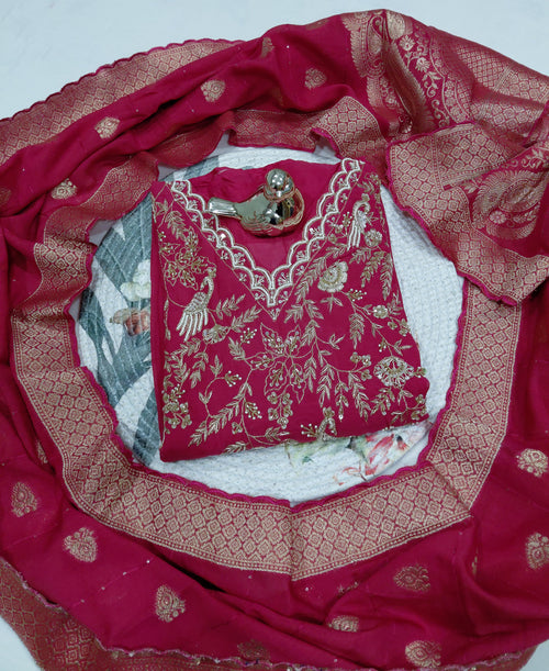 PURE DOLA WITH BANARSI DUPATTA WITH HEAVY SHELVES WORK